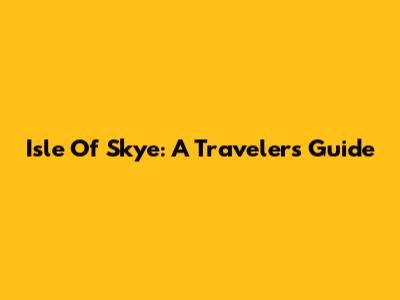 Isle Of Skye: A Traveler's Guide