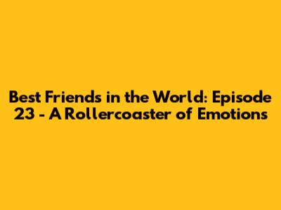 Hey everyone! Welcome back to the ultimate deep dive into the world of Best Friends in the World! Episode 23, huh? We've been through a lot together, haven't we? This episode was a total rollercoaster, and I'm stoked to break it all down with you guys. Get ready for some serious feels, because this one packed a punch! We're talking about the core of friendship and the crazy, beautiful mess that is life. From heartwarming moments to nail-biting drama, this episode had it all. Let's get into the nitty-gritty of what made Episode 23 so memorable. In this episode we will focus on what makes a true friendship. It focuses on the relationships between characters. In this episode we explore the intricate bonds that connect our favorite characters.