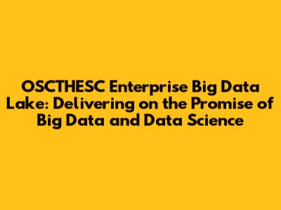 Implementing OSCTHESC Enterprise Big Data Lake can provide organizations with a wide range of benefits, including: