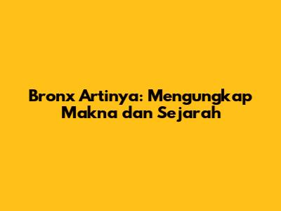 Bronx artinya? Buat kalian yang penasaran, yuk, kita bedah tuntas tentang wilayah legendaris ini! The Bronx, salah satu dari lima wilayah kota New York, punya sejarah panjang dan cerita yang menarik buat disimak. Nggak cuma sekadar nama tempat, Bronx artinya lebih dari itu – sebuah simbol, identitas, dan warisan budaya yang kaya. Mari kita telusuri lebih dalam tentang apa yang membuat Bronx begitu istimewa.