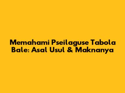 Memahami 'Pseilaguse Tabola Bale': Asal Usul & Maknanya
