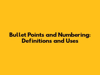 - Reports and Documents: Reports use bullet points for summaries, findings, and recommendations. Numbering is used for sequential steps, chapters, and sections.
