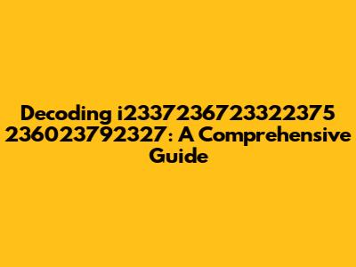 Hey guys! Ever stumbled upon something that looks like a random string of numbers and wondered what it means? Well, today we're diving deep into the mysterious world of i2337236723322375 236023792327. No, it’s not a secret code from a spy movie, but it might just be as intriguing! We’re going to break down what this jumble of numbers could possibly represent, how to approach decoding it, and why understanding these types of identifiers can be super useful in various contexts. So, buckle up and get ready to become a number-deciphering pro! Let's get started and unravel this numeric enigma together. Understanding what you're looking at is the first step. Is it a product ID, a serial number, or perhaps a reference code for something specific? Knowing the context can dramatically change your approach. Companies often use unique identifiers to track products, manage inventory, or reference specific data points. Think of it like a digital fingerprint – each number sequence is unique and points to something particular. In the world of technology and data management, these identifiers are crucial for maintaining order and accuracy. For instance, in a large database, a number like this might be used to quickly locate a specific record without having to sift through thousands of entries. So, before we even start trying to decode the number, let’s consider where you found it and what it might be related to. This simple step can save you a lot of time and headache down the road. Remember, context is king! Identifying the source and potential purpose of the number is paramount to understanding its meaning.