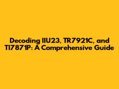 Hey guys! Ever stumbled upon some cryptic codes like IIU23, TR7921C, or TI7871P and wondered what they actually mean? Well, you're not alone! These types of alphanumeric codes are used everywhere, from identifying specific products to tracking inventory or even categorizing data within large systems. In this comprehensive guide, we'll break down what these codes might represent, how they are used, and why understanding them can be super helpful. Buckle up, because we are about to dive deep into the world of code cracking! Knowing how to interpret these identifiers can save you a ton of time and frustration, whether you are trying to find the right part for a repair, understand a serial number, or just make sense of a data sheet. So, let's get started and unlock the secrets behind IIU23, TR7921C, and TI7871P!