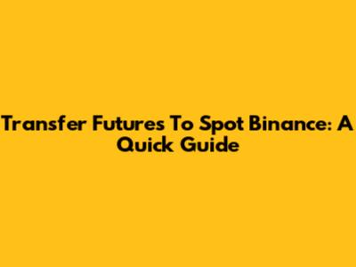 Transfer Futures To Spot Binance: A Quick Guide