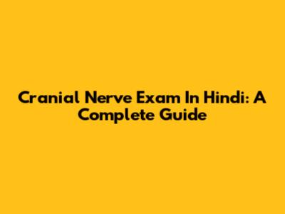 Cranial Nerve Exam In Hindi: A Complete Guide