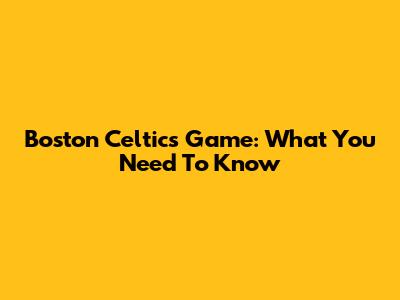 Boston Celtics Game: What You Need To Know