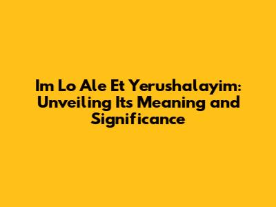 Hey guys! Ever heard the phrase "Im Lo Ale Et Yerushalayim" and wondered what it means? Well, you're in the right place! This powerful Hebrew phrase, often sung and recited in Jewish contexts, carries a deep historical, religious, and emotional weight. Let's break it down and explore its profound significance. Understanding this phrase gives you a peek into the heart of Jewish identity and its enduring connection to Jerusalem.