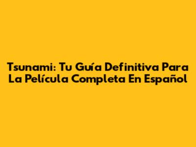 Tsunami: Tu Guía Definitiva Para La Película Completa En Español