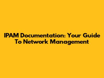 IPAM Documentation: Your Guide To Network Management