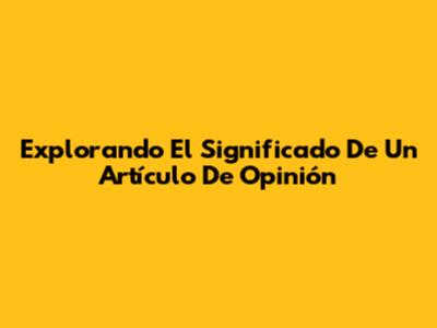 Explorando El Significado De Un Artículo De Opinión