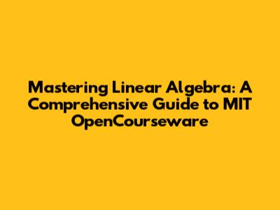Hey guys! Ever felt like linear algebra is this massive wall you need to climb? Well, fear not! Because we're diving headfirst into the world of MIT OpenCourseware linear algebra, a fantastic resource that can transform you from a linear algebra newbie into a confident problem-solver. This article is your friendly guide, walking you through the highlights of MIT's free online course and showing you how to make the most of it. We'll explore what makes this course so special, the essential topics covered, and how to structure your learning for maximum impact. Think of it as your personal roadmap to conquer those linear equations and understand the power of matrices.
