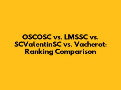 To effectively compare OSCOSC, LMSSC, SCValentinSC, and Vacherot, we need a side-by-side analysis based on relevant metrics. This might involve comparing their financial performance, market share, customer satisfaction ratings, brand reputation, and social impact. It is essential to use consistent and reliable data sources to ensure an accurate and fair comparison. If these entities operate in different industries or sectors, it may be necessary to adjust the comparison criteria to account for industry-specific factors. For example, comparing a technology company with a manufacturing company may require different metrics and benchmarks. Moreover, the relative importance of each metric may vary depending on the specific goals and objectives of the comparison. For instance, if the goal is to assess the financial health of these entities, financial performance metrics would be given greater weight. Alternatively, if the goal is to evaluate their brand reputation, customer satisfaction ratings and social media sentiment would be more important. In addition to quantitative metrics, qualitative factors such as organizational culture, leadership effectiveness, and innovation capabilities should also be considered. These factors can provide valuable insights into the long-term sustainability and competitive advantage of these entities. Therefore, a comprehensive comparative analysis should encompass both quantitative and qualitative aspects to provide a holistic understanding of their relative strengths and weaknesses. By conducting a thorough and objective comparison, stakeholders can make informed decisions about investments, partnerships, and other strategic initiatives.
