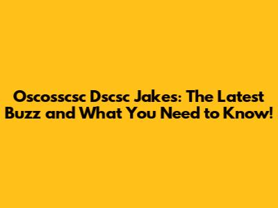 Recent News and Updates on Oscosscsc Dscsc Jakes