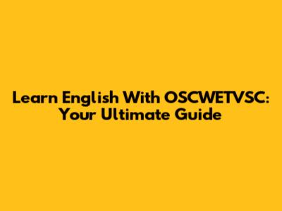 Learn English With OSCWETVSC: Your Ultimate Guide