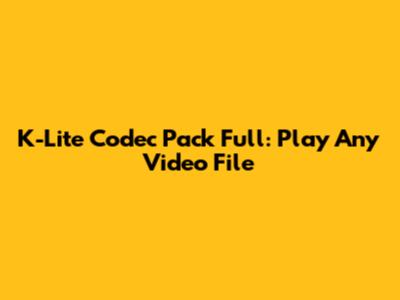 K-Lite Codec Pack Full: Play Any Video File
