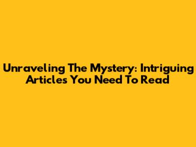 Unraveling The Mystery: Intriguing Articles You Need To Read