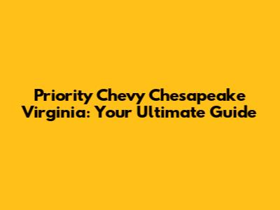 Priority Chevy Chesapeake Virginia isn't just a dealership; it's a partner in your automotive journey. They are there to assist you every step of the way, providing exceptional service and support. They are committed to ensuring that you drive away happy and that your vehicle continues to perform at its best for years to come. Consider them for your next car purchase or service appointment, and experience the Priority Chevy Chesapeake difference!