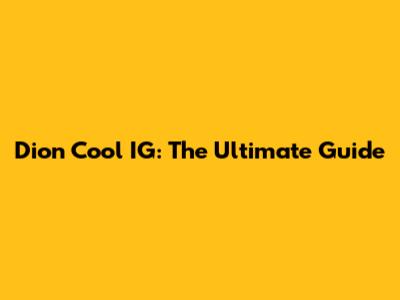 Dion Cool IG: The Ultimate Guide