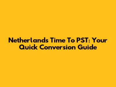 Netherlands Time To PST: Your Quick Conversion Guide
