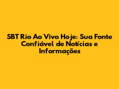 SBT Rio ao vivo hoje! Quer ficar por dentro de tudo o que acontece no Rio de Janeiro? O SBT Rio oferece uma cobertura completa, trazendo as últimas notícias, análises aprofundadas e reportagens exclusivas. Seja no jornal da manhã, no almoço ou no final da noite, você pode acompanhar a programação ao vivo e ficar bem informado sobre os principais acontecimentos da cidade. Nós, do SBT Rio, estamos sempre prontos para levar até você as informações mais relevantes, com credibilidade e imparcialidade. Prepare-se para mergulhar no universo da informação e descobrir tudo o que o SBT Rio tem a oferecer. Não perca tempo, fique ligado no SBT Rio ao vivo hoje e garanta que você está sempre por dentro de tudo.