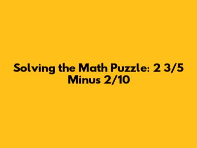 Hey guys! Ever stumble upon a math problem and think, "Whoa, where do I even begin?" Well, don't sweat it! We're diving into a classic: 2 3/5 minus 2/10. It looks a bit intimidating at first glance, especially with that mixed number and fraction combo, but trust me, it's totally manageable. We'll break it down step-by-step, making sure you grasp every single move. By the end of this, you'll be knocking out these problems like a pro! This isn't just about getting the answer; it's about understanding why each step is taken. Ready to get started? Let's turn those head-scratching moments into "Aha!" moments. We'll explore the conversion of mixed numbers to improper fractions, finding the perfect common denominator, and finally, subtracting the fractions. It's a journey, not a race, so let's enjoy the process and conquer this math problem together. We'll also cover some neat tricks and tips that will make solving similar problems a breeze in the future. So, grab your pencils and let's jump right in. Remember, practice makes perfect, and with each problem you solve, you're building a stronger foundation in math. Let's make learning math fun and accessible for everyone. It's time to unlock the secrets behind fractions and mixed numbers, making them your new best friends. Let's get started and turn this math problem into a piece of cake.