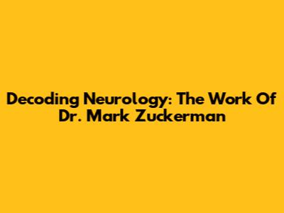Decoding Neurology: The Work Of Dr. Mark Zuckerman