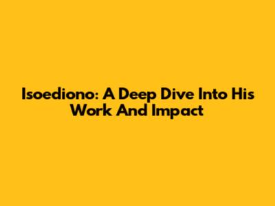 Isoediono: A Deep Dive Into His Work And Impact