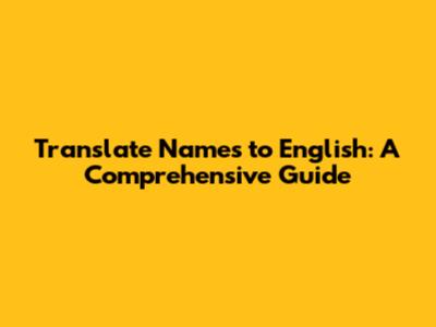 Hey everyone! Ever found yourself wondering how to translate a name into English accurately? Names carry so much cultural and personal significance, and getting them right when communicating across languages is super important. Whether you're dealing with personal names for international friends, business contacts, or even fictional characters, this guide will walk you through everything you need to know.