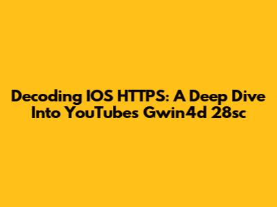 Decoding IOS HTTPS: A Deep Dive Into YouTube's Gwin4d 28sc