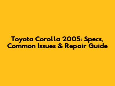 Toyota Corolla 2005: Specs, Common Issues & Repair Guide