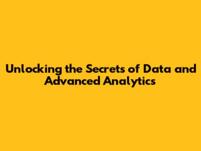 Getting Started with Data and Advanced Analytics