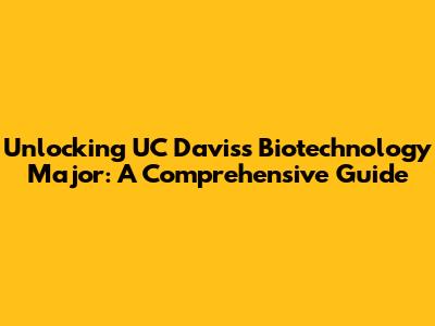 Unlocking UC Davis's Biotechnology Major: A Comprehensive Guide