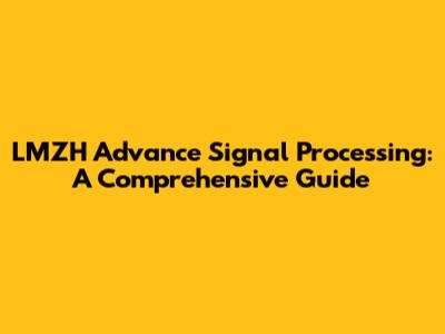 LMZH Advance Signal Processing: A Comprehensive Guide