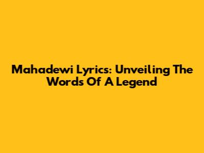 Mahadewi Lyrics: Unveiling The Words Of A Legend